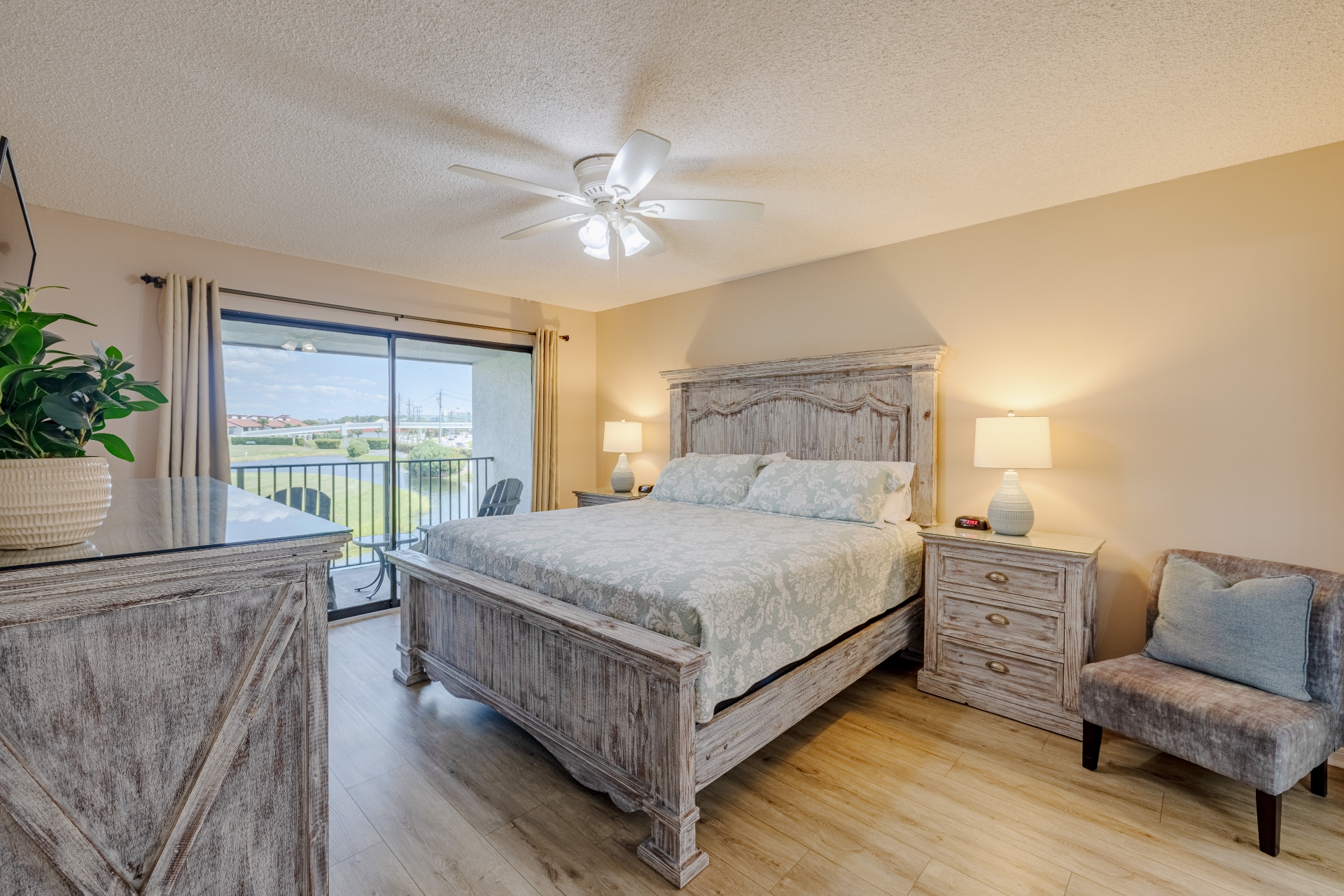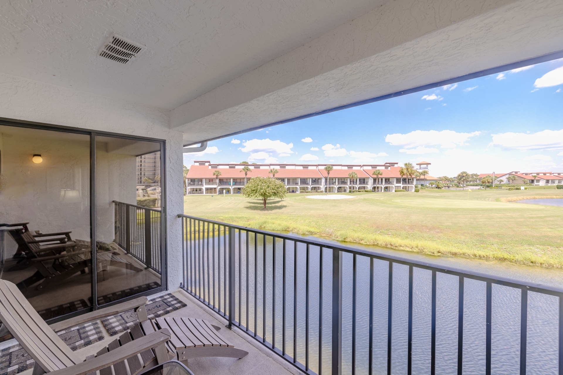This second floor two bedroom, two bath golf & pond-view villa is in the Beachview section of Edgewater Beach and Golf Resort. In close proximity to the resort's private beach access: a separate gate that leads you to the white sand.
